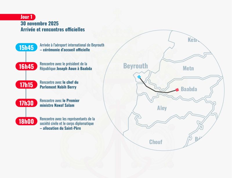 Le souverain pontife devrait rencontrer les plus hautes autorités libanaises: le président de la République Joseph Aoun, le Premier ministre Nawaf Salam et le chef du Parlement Nabih Berry. Il s’adressera également à des représentants de la société civile et au corps diplomatique, lors d’un temps fort politique très attendu.