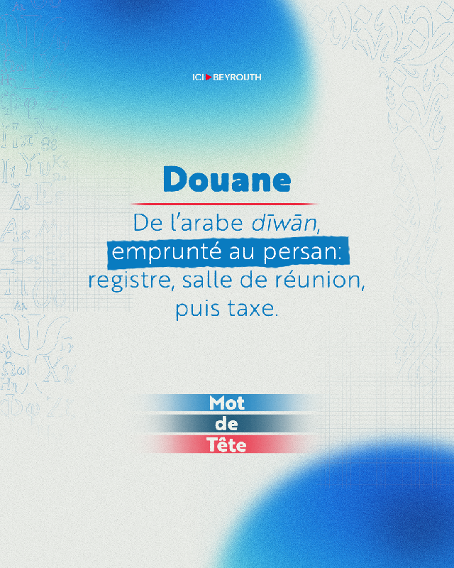 Le mot «douane» entre en français au XIIIᵉ siècle sous la forme dohanne, d’abord pour désigner le lieu où s’exercent les contrôles. Il vient de l’italien médiéval doana / dogana, lui-même issu de l’arabe dīwān, emprunté au persan dīwān: le registre administratif, la salle de réunion, puis le bureau de l’État chargé de collecter impôts et taxes.