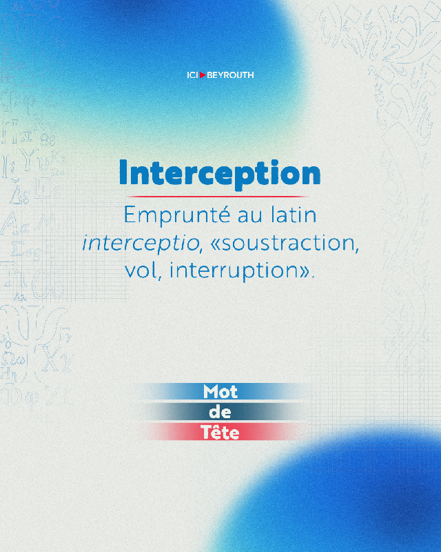 Le terme «interception» apparaît en français dès le XIIIᵉ siècle. Il est emprunté au latin interceptio, qui signifie à la fois «soustraction», «vol» et «interruption» . À l’origine, intercepter, c’est littéralement «prendre entre», s’emparer de quelque chose en cours de route.