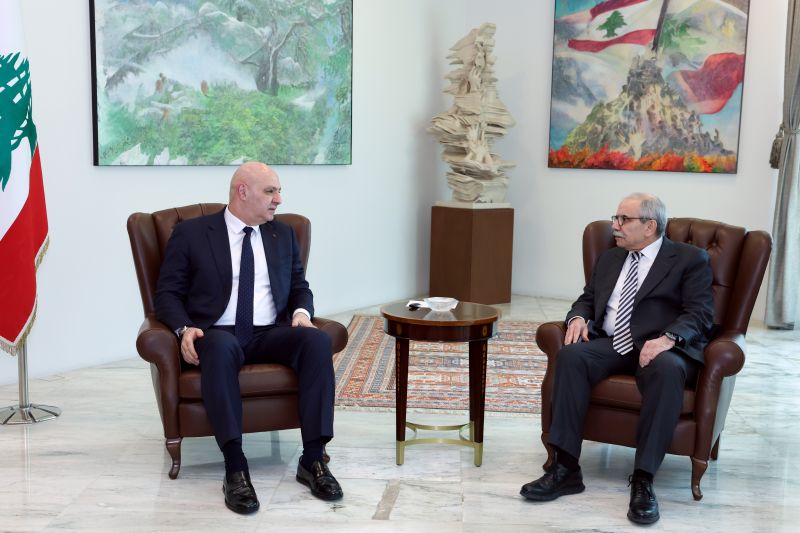 Le président Joseph Aoun s'entretenant avec le Premier ministre Nawaf Salam en amont d'un Conseil des ministres au Palais présidentiel le 30 avril 2026 / © Palais présidentiel