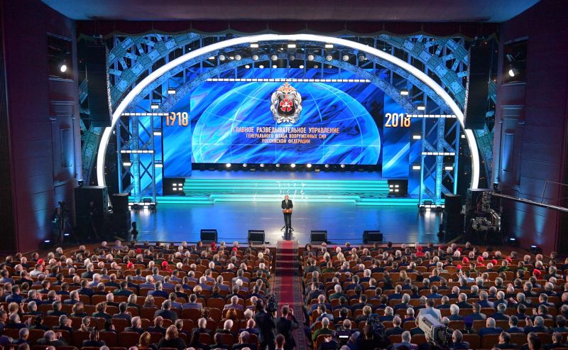 Vladimir Poutine lors d'une cérémonie pour le 100ème anniversaire du GRU, en 2018.