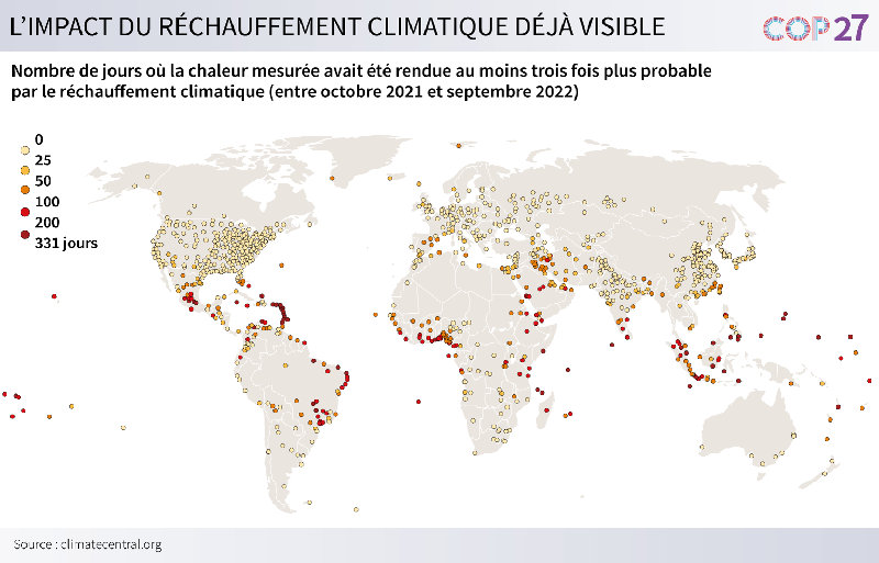 Ces résultats résonnent fortement à quasiment une semaine de l'ouverture de la COP27. La question des compensations réclamées par les pays les plus vulnérables, disproportionnellement affectés, quoique les moins responsables du changement climatique, devrait y être l'un des points de débat clé.