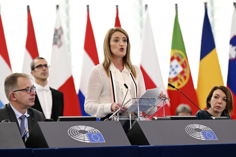 La présidente du Parlement européen Roberta Metsola.Trois autres personnes ont été écrouées dans cette enquête.