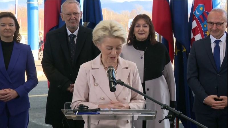 "C'est la saison des nouveaux départs" commente la cheffe de la commission européenne Ursula von der Leyen, en Croatie, au sujet de l'adoption de l'euro par la Croatie et de son intégration à l'espace Schengen de libre circulation. (AFP)