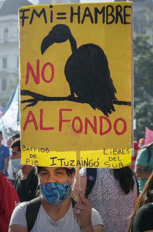 Jusqu'à nos jours, les Argentins enragent contre le FMI, qui a imposé des mesures d'austérité impopulaires pour accepter le financement du pays. Le FMI et plusieurs autres créanciers étrangers sont assimilés à des vautours tant et si bien que l'Argentine négocie jusqu'à présent le remboursement de certains créanciers qui ont perçus des intérêts dépassant les 50%, des créanciers appelés justement des "fonds vautours". (Photos AFP)"Le 20 décembre est un jour anniversaire très important en Argentine", a expliqué à l'AFP Gabriel Solano, un militant du Parti ouvrier. "Mais, 20 ans après, nous voyons une situation plus ou moins semblable : grande pauvreté, misère et de nouveau un pacte avec le FMI qui menace le peuple d'un plan d'ajustement. Nous revenons ici, Plaza de Mayo, dire que nous ne voulons plus de plan d'ajustement pour le peuple".