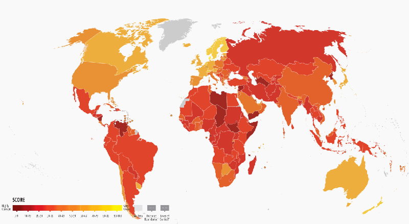 L'Indice de perception de la corruption 2022 révèle une extension de la corruption au niveau global, 155 pays sur 180 ayant vu leur performance stagner ou empirer par rapport à 2021. Pour l'organisation, la lutte contre la corruption ne constitue pas la priorité des dirigeants, accaparés par les besoins de la relance économique.