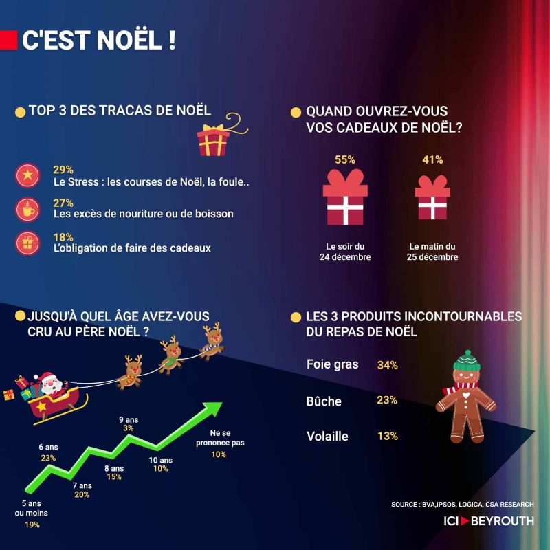 Enfin, concernant les cadeaux, 55% des familles françaises optent pour les ouvrir le soir du 24 décembre au lieu d'attendre jusqu'à la matinée du 25 décembre.