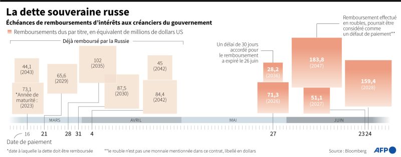 Graphique montrant le calendrier des remboursements de la dette souveraine russe- AFP / AFP